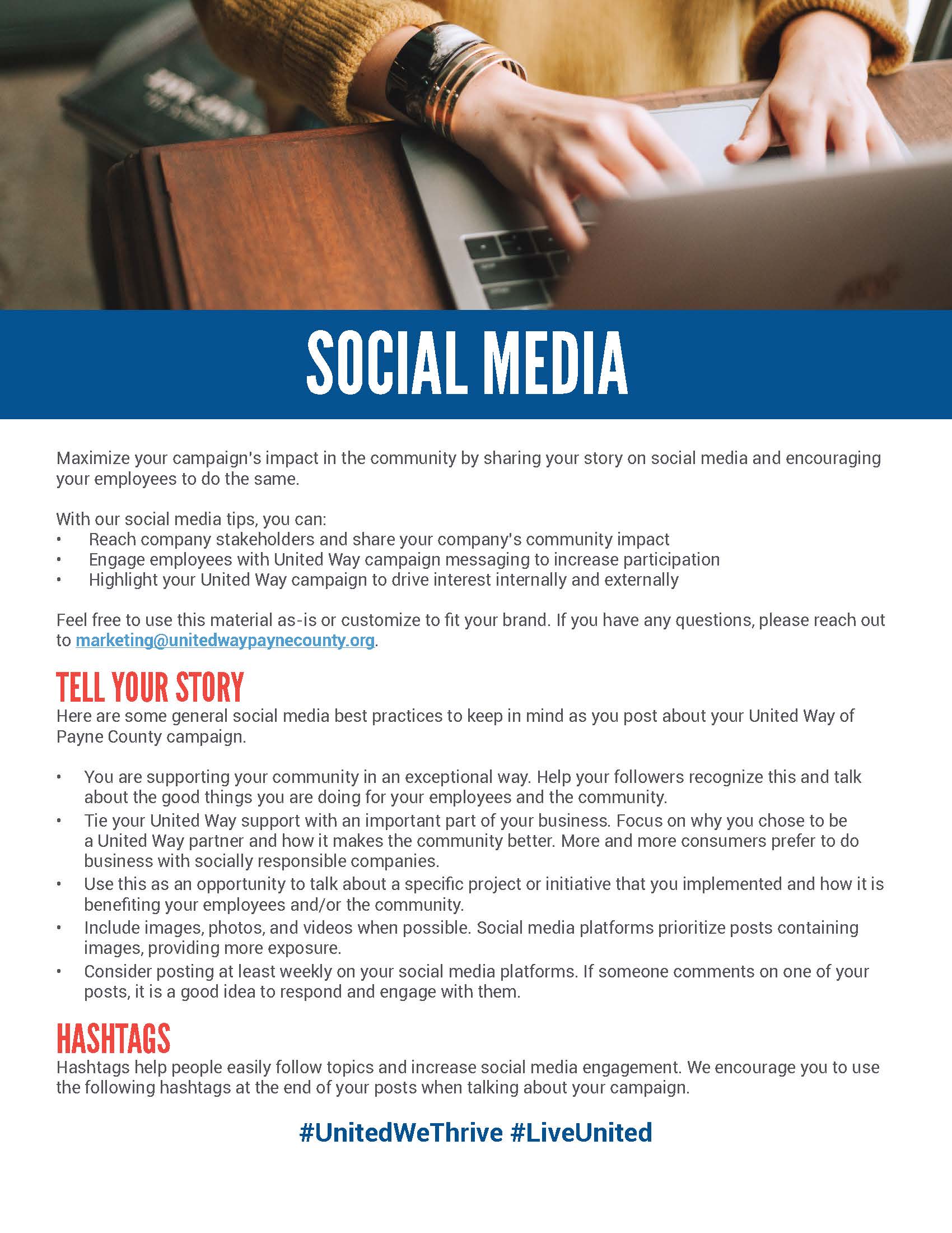 When posting on social media, follow these best practices to ensure your audience is engaged and educated about the United Way mission.